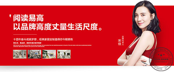 選好加盟全屋定制品牌,最先看的就是品牌知名度。除了被消費(fèi)者知曉接受并影響選擇的決策之外,對(duì)于樹(shù)立品牌形象也有非常積極的推動(dòng)作用。易高家居邀請(qǐng)著名影星宋佳為其代言。央視、機(jī)場(chǎng)、高鐵、高速、網(wǎng)絡(luò)等媒體進(jìn)行多維度品牌傳播更是提高了易高家居品牌知名度。