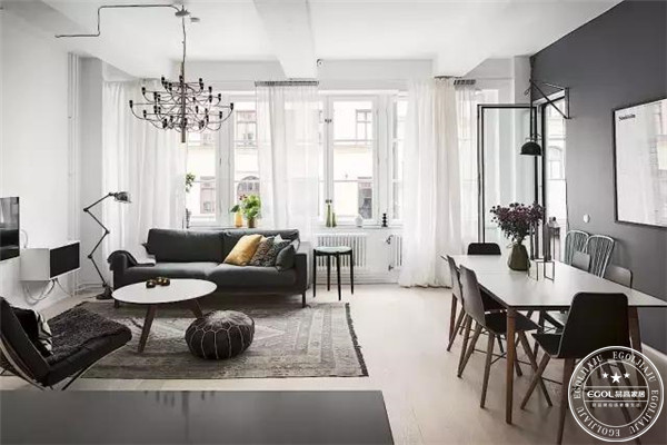 簡約白黑:黑白家具的設計或夸張走極簡路線,用它們來布置居室,能起到瞬間顛覆傳統居室風格的作用。白與黑系列窗簾以經典的白黑色為主,寫意的花紋和幾何紋理的布藝窗簾柔化了居室生硬的表情。值得注意的是,布置房間時,黑色的使用必須把握一個尺度,深色家具過多,會使人產生壓抑的感覺。配幾只橘紅色的靠墊或小面積的紅色裝飾,會使室內冷酷而嚴肅的氣氛得到緩和。