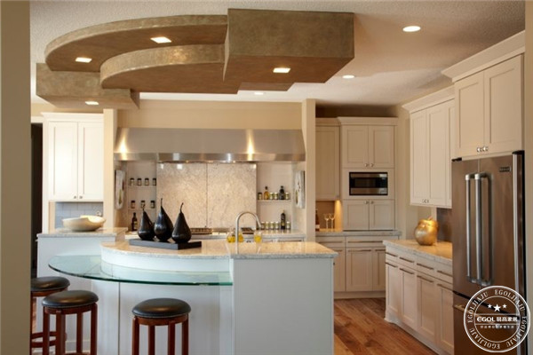 由于廚房離不開煙火,因此在選用廚房吊頂的同時注意選用防火、抗熱、易于清洗的材料,這樣利于廚房的安全性。另外吊頂不需要過高或者過低,只要安全措施到位,廚房吊頂高低位置適宜,利于后期廚房吊頂的清洗。