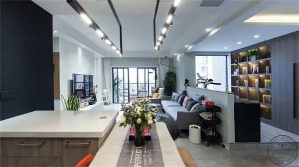 餐廳、客廳、書房和廚房都是開放連為一體,所以空調(diào)建議安裝了兩臺。客廳的紗市在幕布后面,陽光太強的時候直接把幕布降下來遮光,為業(yè)主省了遮光窗市的錢。布電源預(yù)留在窗市意的最左端,剛好和攝像頭共用一個五孔插座。陽臺外面的相同位置也預(yù)留了折座,方便掛彩燈增添節(jié)日氣氛。