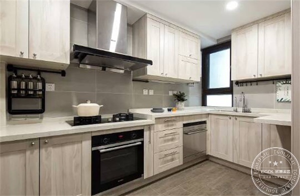 放棄推拉門設(shè)計(jì),選擇半開(kāi)放式廚房設(shè)計(jì),空間更顯寬敞。