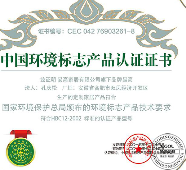 易高從產品研發甲醛釋放量≤0.35g/L,比飲用水更少,原料采用原生態易居板,經過歐洲權威機構檢測,均達到或超過E1環保等級,易高在每一個環節上堅持追求原態環保的理念。