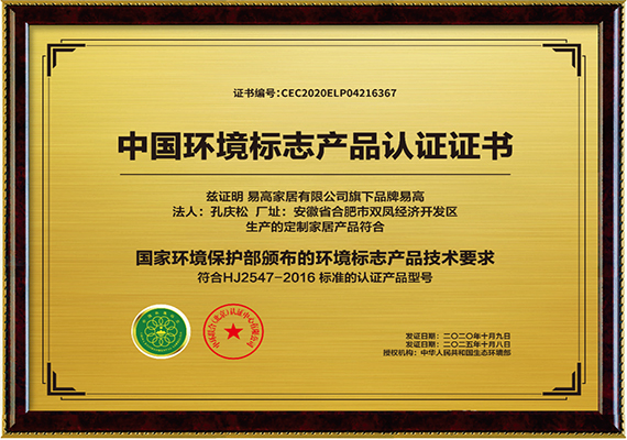 榮譽名稱:中國環(huán)境標志產品認證證書