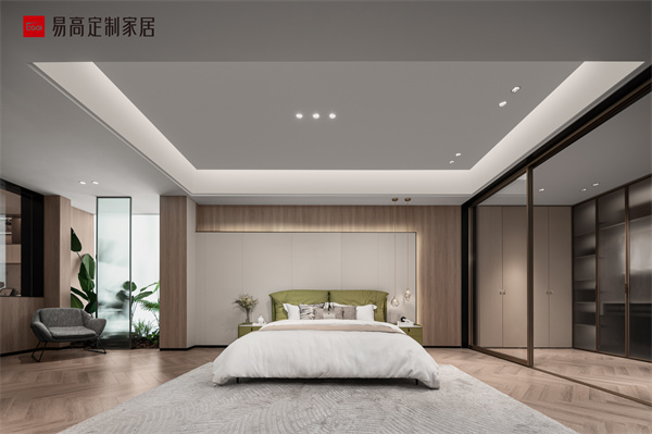 整體設計恢弘大氣,用自然紋理和皮質軟包的碰撞演繹奢雅生活美學,時尚內斂,詮釋高階生活品質。衣帽間步入見美,異形幾何元素和光影巧妙聯動,典雅不凡的氣質呼之欲出,精致格調愉悅身心。