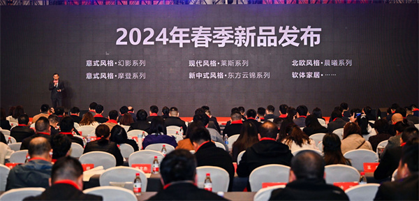 會議現場發布了2024春季新品,六大系列新品以獨特的設計理念、精致工藝與創新材質的融合,詮釋潮流家居新風尚;同步推出“整家V店”全新店態,以“小而精”的家裝渠道店豐富店態模式,進一步提升客戶體驗感,助力大家居戰略落地。